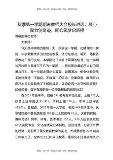 秋季第一学期期末教师大会校长讲话:凝心聚力创奇迹,同心筑梦启新程.doc