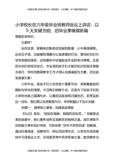 小学校长在六年级毕业班教师会议上讲话:以5大关键为钥,启毕业季璀璨新篇.docx