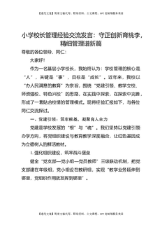 小学校长管理经验交流发言:守正创新育桃李,精细管理谱新篇.docx