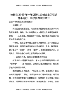 校长在2025年一年级新生家长会上的讲话:携手同行,共护新苗茁壮成长.docx