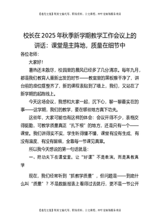 校长在2025年秋季新学期教学工作会议上的讲话:课堂是主阵地,质量在细节中!.docx
