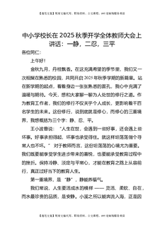 中小学校长在2025秋季开学全体教师大会上讲话:一静,二忍,三平.docx