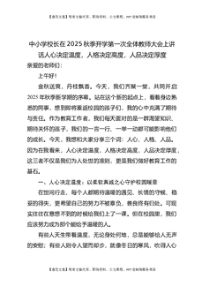 中小学校长在2025秋季开学第一次全体教师大会上讲话:人心决定温度,人格决定高度,人品决定厚度.docx