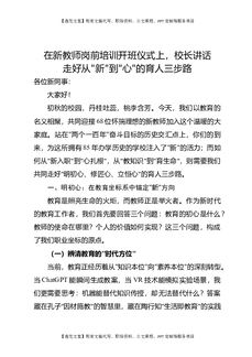 在新教师岗前培训开班仪式上,校长讲话:走好从新到心的育人三步路.docx
