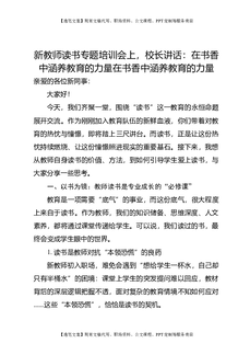 新教师读书专题培训会上,校长讲话:在书香中涵养教育的力量在书香中涵养教育的力量.docx