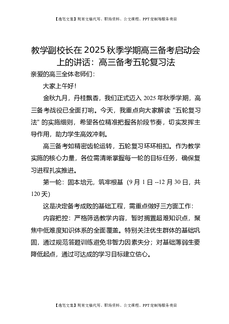 教学副校长在2025秋季学期高三备考启动会上的讲话:高三备考五轮复习法.docx