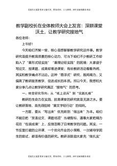 教学副校长在全体教师大会上发言:深耕课堂沃土,让教学研究接地气.docx