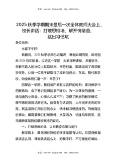 2025秋季学期期末最后一次全体教师大会上,校长讲话:打破思维墙,解开情绪茧,跳出习惯坑.doc