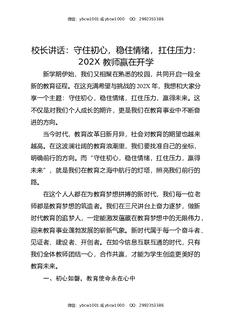 校长讲话:守住初心,稳住情绪,扛住压力:202X教师赢在开学.docx
