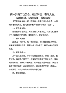 高一升高二动员会,校长讲话:奋斗人生,知难而进,明确选择,共创辉煌.docx