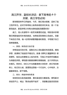 高三开学,副校长讲话:拿下高考的4个关键,高三学生必知.docx