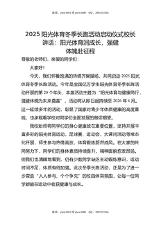 2025阳光体育冬季长跑活动启动仪式校长讲话:阳光体育润成长,强健体魄赴征程.doc