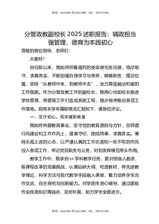 分管政教副校长2025述职报告:辅政担当强管理,德育为本践初心.doc