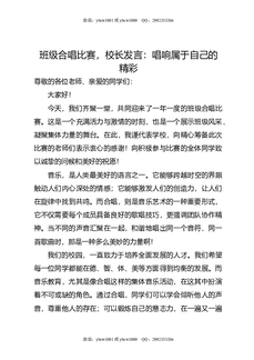 班级合唱比赛,校长发言:唱响属于自己的精彩.doc