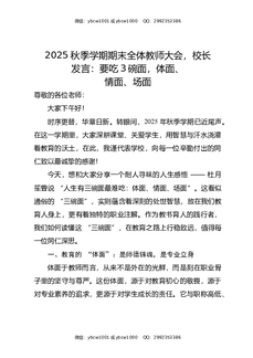 2025秋季学期期末全体教师大会,校长发言:要吃3碗面,体面,情面,场面.docx