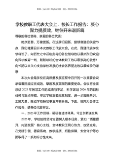 学校教职工代表大会上,校长工作报告:凝心聚力提质效,继往开来谱新篇.doc