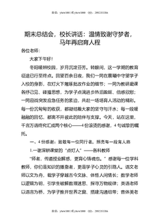 期末总结会,校长讲话:温情致谢守梦者,马年再启育人程.doc
