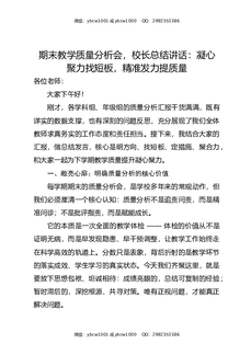 期末教学质量分析会,校长总结讲话:凝心聚力找短板,精准发力提质量.docx
