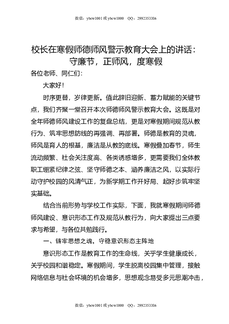 校长在寒假师德师风警示教育大会上的讲话:守廉节,正师风,度寒假.doc