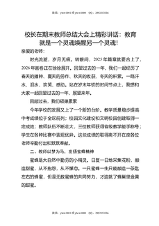 校长在期末教师总结大会上精彩讲话:教育就是一个灵魂唤醒另一个灵魂!.doc