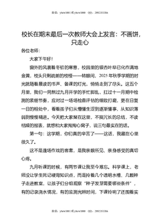 校长在期末最后一次教师大会上发言:不画饼,只走心.doc