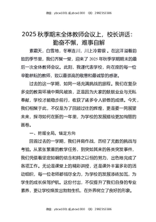 2025秋季期末全体教师会议上,校长讲话:勤奋不懈,难事自解.docx