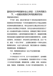 副校长在中考前家长会上讲话:三方共同努力下,一定能实现我们共同的美好目标.doc