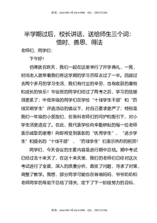 半学期过后,校长讲话,送给师生三个词:惜时,善思,得法.doc