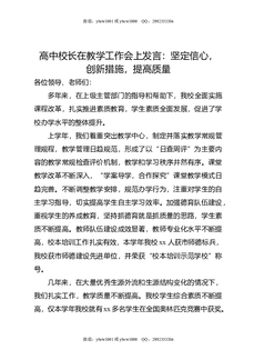 高中校长在教学工作会上发言:坚定信心,创新措施,提高质量.docx