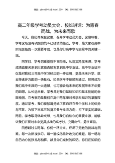 高二年级学考动员大会,校长讲话:为青春而战,为未来而歌.docx