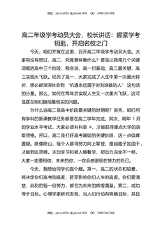 高二年级学考动员大会,校长讲话:握紧学考钥匙,开启名校之门.docx