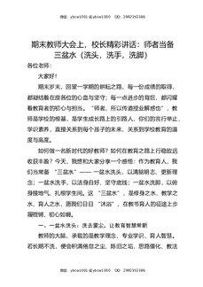 期末教师大会上,校长精彩讲话:师者当备三盆水(洗头,洗手,洗脚).docx