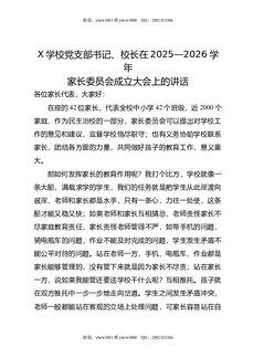 X学校党支部书记,校长在2025-2026学年家长委员会成立大会上的讲话.doc