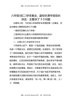 八年级(初二)学生集会,副校长兼年级组长讲话:主要讲了3个问题.docx