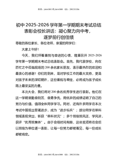 初中2025-2026学年第一学期期末考试总结表彰会校长讲话:凝心聚力向中考,逐梦前行创佳绩.doc