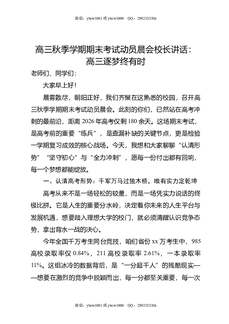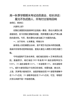 高一秋季学期期末考试动员晨会,校长讲话:星光不负赶路人,所有付出皆有回响.doc