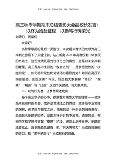 高三秋季学期期末总结表彰大会副校长发言:以终为始赴征程,以勤笃行铸荣光.doc