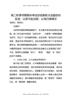 高二秋季学期期末考试总结表彰大会副校长发言:以坚守赴征程,以笃行铸锋芒.doc