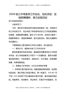 2026初三中考备考工作会议,校长讲话:发扬拼搏精神,努力实现目标.doc