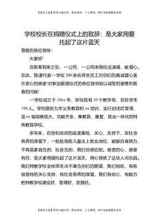 学校校长在捐赠仪式上的致辞:是大家用爱托起了这片蓝天.doc