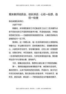 期末教师动员会,校长讲话:心往一处想,劲往一处使.doc