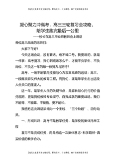 校长在高三毕业班教师会上讲话:凝心聚力冲高考,高三三轮复习全攻略,陪学生跑完最后一公里.doc
