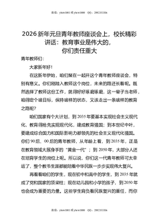2026新年元旦青年教师座谈会上,校长精彩讲话:教育事业是伟大的,你们责任重大.doc