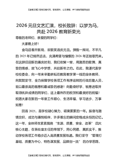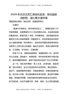 2026元旦文艺汇演,校长致辞:以梦为马,共赴2026教育新荣光.docx