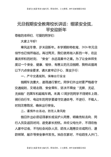 元旦假期安全教育校长讲话:绷紧安全弦,平安迎新年.doc