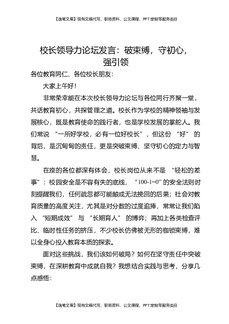 校长领导力论坛发言:破束缚,守初心,强引领.docx