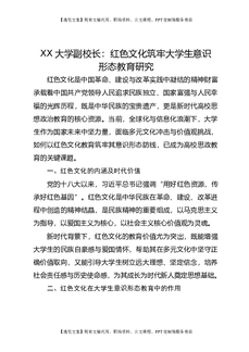 XX大学副校长:红色文化筑牢大学生意识形态教育研究.doc