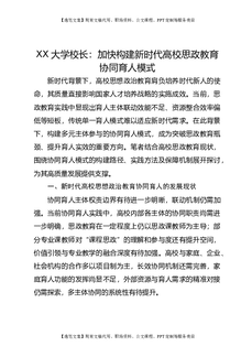 XX大学校长:加快构建新时代高校思政教育协同育人模式.doc