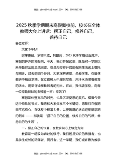2025秋季学期期末寒假离校前,校长在全体教师大会上讲话:摆正自己,修养自己,善待自己.docx