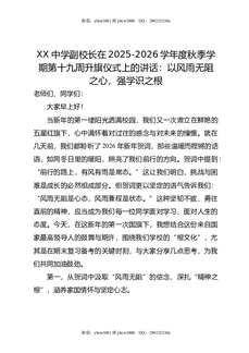 XX中学副校长在2025-2026学年度秋季学期第十九周升旗仪式上的讲话.docx